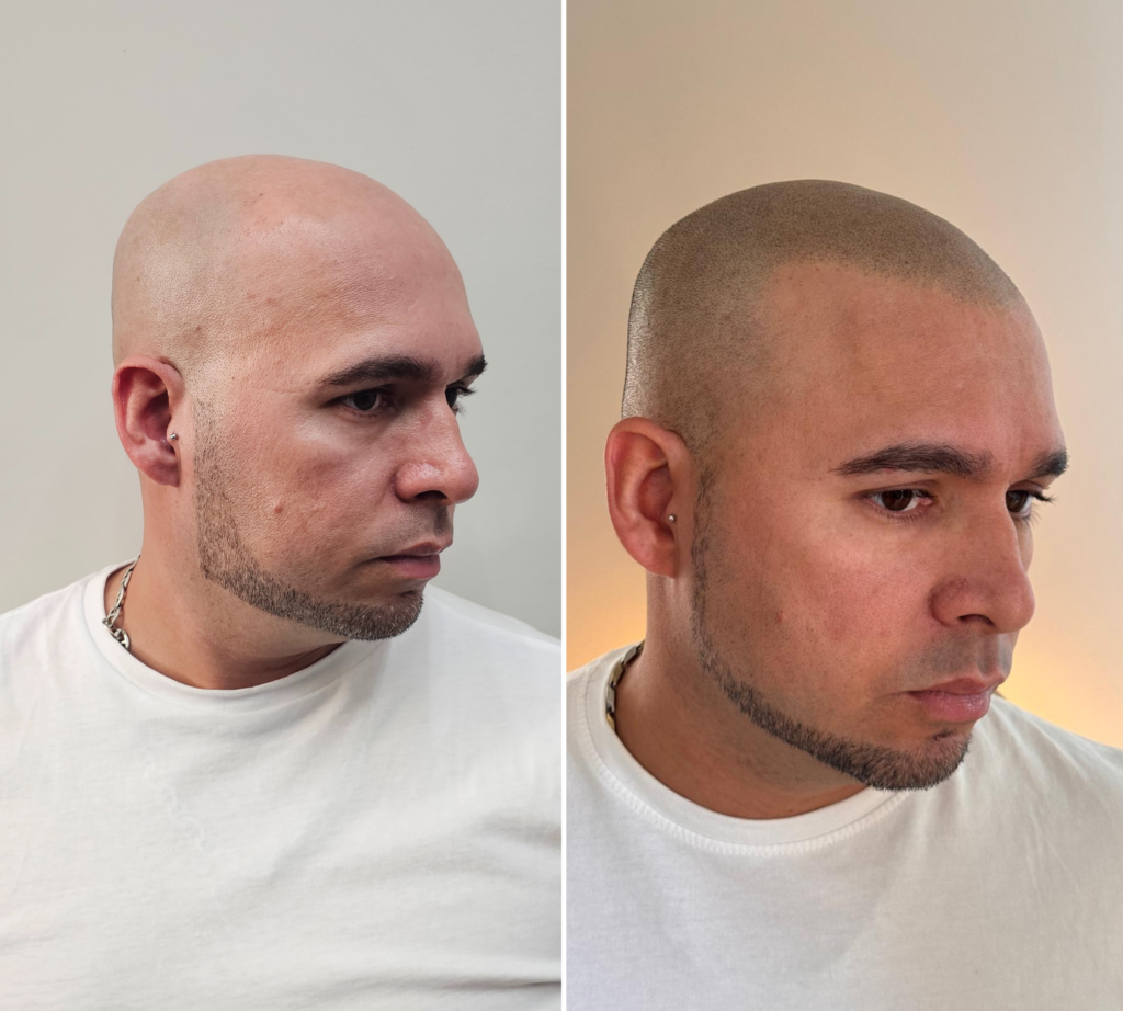 Con un dermógrafo profesional aplicamos micro puntos de pigmento que imitan el folículo capilar, sin dolor, sin cicatrices y con un efecto rapado totalmente natural.
